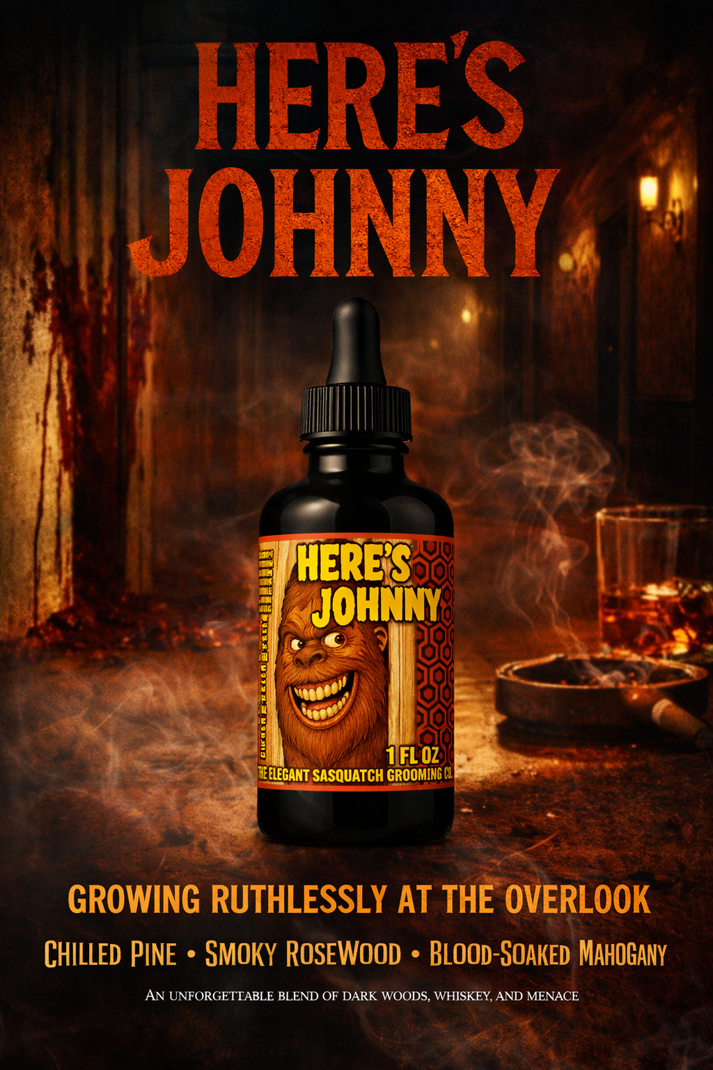 Enter the Overlook and lock the door behind you. Here’s Johnny is a bold, dark beard oil that blends rugged masculinity with a chilling, cinematic edge. Crafted by Elegant Sasquatch Grooming, this limited edition release is made for horror fans and men who like their grooming ritual with a little menace.